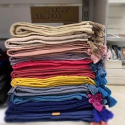 Chusty muślinowe z najwyższej jakości bawełny z ręcznie robionymi frędzelkami.