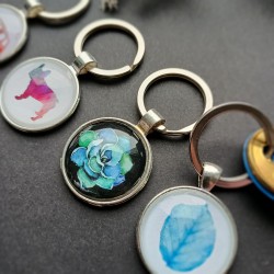 Brelok z kółeczkiem z grafiką ukrytą za szkiełkiem o średnicy 25mm.